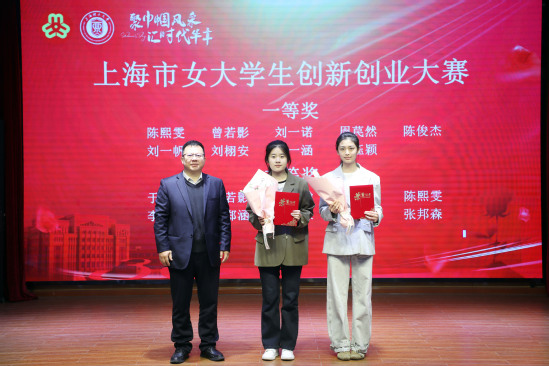黃志強(qiáng)為上海市女大學(xué)生創(chuàng)新創(chuàng)業(yè)大賽獲獎(jiǎng)?wù)哳C獎(jiǎng)