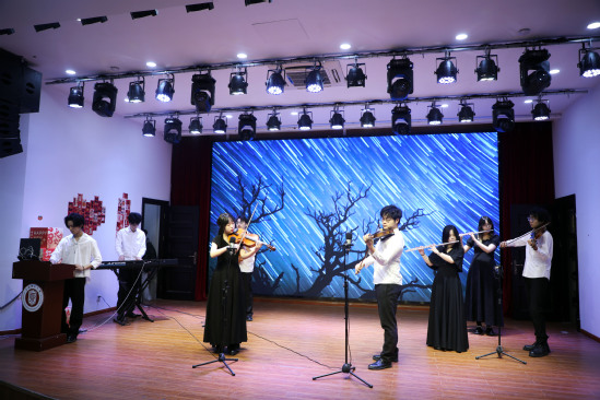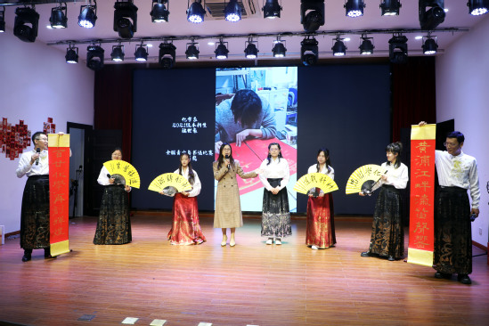 在節(jié)目展示環(huán)節(jié),現(xiàn)場氣氛熱烈,歡聲笑語不斷。滬江學(xué)院音樂系李花老師、張宇迪老師以鋼琴演奏與聲樂演唱相融合的形式,對古曲《長相知》進(jìn)行了精彩演繹,將古風(fēng)古韻展現(xiàn)得入木三分;校團(tuán)委大學(xué)生藝術(shù)團(tuán)帶來樂器合奏《夜空中最亮的星》,通過古典樂器與現(xiàn)代流行樂器的完美結(jié)合,擦出新穎的音樂火花,為聽眾帶來多元的聽覺盛宴;材料與化學(xué)學(xué)院應(yīng)用化學(xué)專業(yè)巾幗團(tuán)隊(duì)帶來由學(xué)院繆煜清教授作詞的原創(chuàng)歌曲《變化之學(xué)》,并通過歌舞結(jié)合的表現(xiàn)形式,讓每一位在場的老師領(lǐng)略到科學(xué)與藝術(shù)完美融合的獨(dú)特魅力。