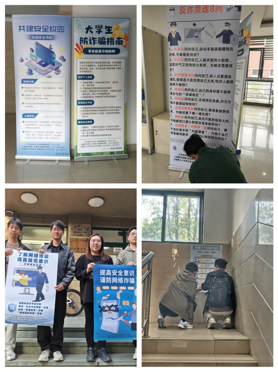 宣傳全覆蓋:學(xué)院通過張貼海報(bào)、擺放易拉寶等方式,在機(jī)械工程學(xué)院大樓、宿區(qū)等學(xué)生重要活動場所普及反詐知識,以典型案例和防范技巧提醒師生警惕詐騙,營造濃厚的反詐安全氛圍。