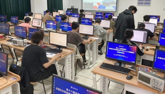 為充分做好大賽的組織服務(wù)工作,創(chuàng)新創(chuàng)業(yè)學(xué)院(公共實(shí)驗(yàn)中心)與教務(wù)處、后勤處、保衛(wèi)處、基建處等相關(guān)部門以及光電學(xué)院積極協(xié)調(diào)聯(lián)動(dòng)、密切溝通配合,協(xié)調(diào)計(jì)算中心、電工電子實(shí)驗(yàn)中心從賽程規(guī)劃、場地安排、電力保障、設(shè)備調(diào)試、環(huán)境搭建、賽場布置、考務(wù)安排、模擬測試等方面進(jìn)行了周密的部署和準(zhǔn)備,為大賽的順利舉辦提供了有力保障。競賽現(xiàn)場氣氛緊張有序,賽事監(jiān)考客觀公正,考風(fēng)考紀(jì)嚴(yán)肅認(rèn)真。在長達(dá)5個(gè)小時(shí)的競賽過程中,同學(xué)們?nèi)褙炞?、認(rèn)真作答,全力以赴完成競賽內(nèi)容,展現(xiàn)出良好的競賽風(fēng)貌與扎實(shí)的專業(yè)功底。