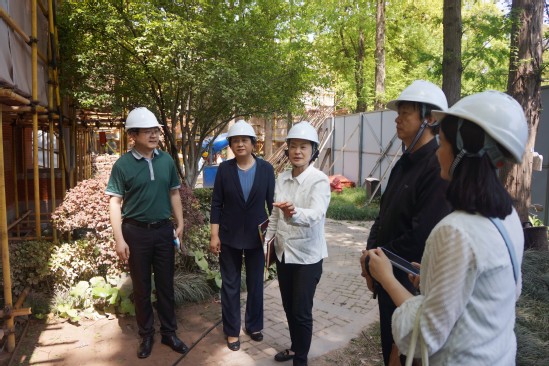 會前,孫紅陪同楊蓉一行實地查看滬江國際文化園澳大利亞文化交流中心暨民進全國會史教育基地“雷潔瓊生平事跡展”展廳的修繕進展情況。