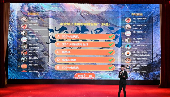 宿舍里可以使用500W吹風(fēng)機和無3C認(rèn)證的充電臺燈等電器嗎?校長獎學(xué)金你了解了嗎?保衛(wèi)處的電話是哪兩個?遲到多久不能進考場呢?在報告會的互動環(huán)節(jié)中引起了同學(xué)們的積極思考,大家紛紛踴躍參與。此次互動通過選取同學(xué)們身邊核心、疑難、常見問題,同學(xué)們更加深入地了解了創(chuàng)新創(chuàng)業(yè)大作業(yè)學(xué)分的評定標(biāo)準(zhǔn)、宿舍電器管理規(guī)定、作弊行為的處分條例、醫(yī)保報銷規(guī)則等關(guān)鍵制度,激發(fā)了同學(xué)們的積極性,宣傳效果優(yōu)異。