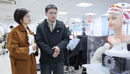 實驗室成員朱永同向記者介紹表情機器人