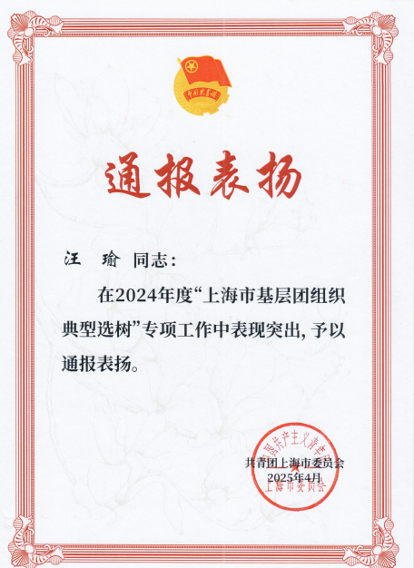 近日,上海團(tuán)市委公布了2024年度上海市基層團(tuán)組織典型選樹(shù)結(jié)果,機(jī)械工程學(xué)院團(tuán)委和機(jī)械工程學(xué)院團(tuán)委書記汪瑜獲通報(bào)表?yè)P(yáng)。
