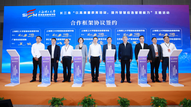 活動現(xiàn)場,上海理工大學(xué)管理學(xué)院院長、智慧應(yīng)急管理學(xué)院執(zhí)行院長趙來軍介紹了智慧應(yīng)急管理學(xué)院在實(shí)驗(yàn)室建設(shè)、科學(xué)研究、應(yīng)急人才培養(yǎng)、應(yīng)急技能培訓(xùn)以及合作交流等方面的建設(shè)發(fā)展成果,并與長三角三省一市應(yīng)急管理宣教中心、安徽省廣德市應(yīng)急管理局,以及上?;ぴ簷z測有限公司、上海仲哲智能科技有限公司(虹口應(yīng)急產(chǎn)業(yè)園)、上海蔚星科技有限公司、上海未高科技有限公司、上海環(huán)鳴信息技術(shù)有限公司等單位簽訂合作協(xié)議。簽約各方將充分發(fā)揮在應(yīng)急管理領(lǐng)域的資源優(yōu)勢,提升教育、研究、應(yīng)用與實(shí)踐能力,加強(qiáng)區(qū)域應(yīng)急管理協(xié)作,構(gòu)建政產(chǎn)學(xué)研用深度協(xié)同的合作機(jī)制,打造應(yīng)急管理領(lǐng)域政、企、校合作的示范樣板。