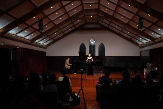 音樂會(huì)以貝多芬《f小調(diào)第23號(hào)"熱情"鋼琴奏鳴曲》Op.57第一樂章開篇,楊東瑾將以雷霆般的和弦與疾風(fēng)驟雨般的旋律,展現(xiàn)作曲家對(duì)命運(yùn)的不屈叩問。隨后,屠雁萍演繹貝多芬為歌德詩作譜寫的《迷娘》,以聲線勾勒少女對(duì)故土的眷戀與迷惘,揭開藝術(shù)歌曲的文學(xué)敘事序幕。舒伯特篇章中,《你是安寧》與《夜與夢(mèng)》呈現(xiàn)了作曲家對(duì)生命與永恒的沉思。屠雁萍的空靈音色與楊東瑾詩意的鋼琴織體,共同編織出靜謐的哲思空間。而經(jīng)典之作《紡車旁的格麗卿》則考驗(yàn)歌者的戲劇張力:屠雁萍的歌聲輔以鋼琴連綿的十六分音符,將少女愛恨交織的煎熬傾瀉于舞臺(tái)。楊東瑾還獨(dú)奏了舒伯特《降E大調(diào)即興曲》,以即興幻變的旋律展現(xiàn)“歌曲之王”的鋼琴詩性。音樂會(huì)尾聲聚焦舒曼的浪漫主義詩情?!东I(xiàn)詞》中熾熱的愛情宣言與《我的玫瑰》中脆弱易逝的哀婉形成鮮明對(duì)比,屠雁萍的嗓音在楊東瑾色彩斑斕的伴奏中游走,完美詮釋舒曼“詩與樂共生”的藝術(shù)理想。兩位藝術(shù)家的演繹,展現(xiàn)了鋼琴與人聲的對(duì)話、文學(xué)與音樂的互文,帶領(lǐng)觀眾深入德語詩歌的意境,體味中德文化在情感表達(dá)上的共鳴與差異。