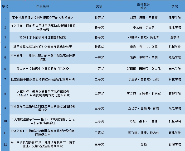 5月23至25日,第十九屆“挑戰(zhàn)杯”上海市大學(xué)生課外學(xué)術(shù)科技作品競(jìng)賽決賽在上海工程技術(shù)大學(xué)松江校區(qū)舉行。上理工共報(bào)送14項(xiàng)作品進(jìn)入市級(jí)復(fù)賽,經(jīng)過激烈角逐,最終獲特等獎(jiǎng)4項(xiàng)、一等獎(jiǎng)2項(xiàng)、二等獎(jiǎng)2項(xiàng)、三等獎(jiǎng)4項(xiàng),總成績位列上海市高校第7名,連續(xù)六屆捧得“優(yōu)勝杯”,特等獎(jiǎng)獲獎(jiǎng)數(shù)量創(chuàng)歷史新高。
