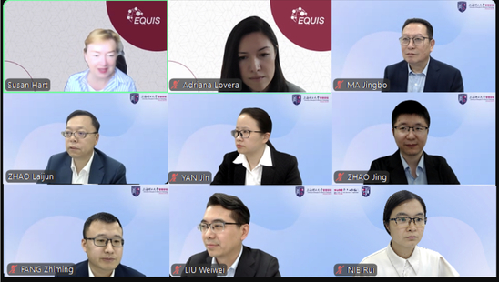 5月23日,管理學院召開EQUIS認證“在線認證資質預評估會議”(Online Briefing)。本次預評估會議由EFMD Global副主任Susan Hart教授與EQUIS質量服務發(fā)展高級經理Adriana Kudrnova Lovera組織召開,對管理學院發(fā)展狀況以及是否具備EQUIS國際認證申請資格進行初步考察和評估。管理學院黨委書記馬靜波,院長趙來軍,黨委副書記嚴瑾,副院長趙靖、房志明、劉魏巍,以及學院辦公室和各系教師代表參會。