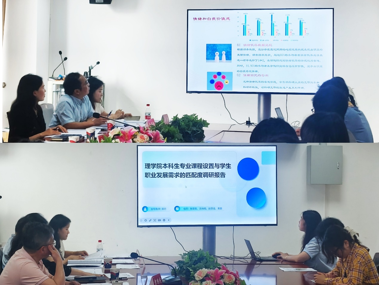 隨后,學(xué)院領(lǐng)導(dǎo)、教師對(duì)各小組的調(diào)研成果進(jìn)行了細(xì)致點(diǎn)評(píng)與深入交流,共同探討了調(diào)研中發(fā)現(xiàn)的問題。章國(guó)慶提出“精煉課程+組會(huì)研討”的復(fù)合培養(yǎng)模式,強(qiáng)調(diào)課題組研討對(duì)科研能力培養(yǎng)的關(guān)鍵作用。李重要強(qiáng)調(diào)專業(yè)課程的核心價(jià)值在于構(gòu)建系統(tǒng)化知識(shí)體系,為學(xué)術(shù)研究奠定堅(jiān)實(shí)基礎(chǔ)。李曉慶提出后續(xù)將通過多渠道推送學(xué)術(shù)講座信息,鼓勵(lì)學(xué)生主動(dòng)參與;針對(duì)心理健康問題,她表示將強(qiáng)化輔導(dǎo)員與心理咨詢聯(lián)動(dòng)機(jī)制,為學(xué)生提供全方位支持。于海濤提出在調(diào)研報(bào)告中應(yīng)注意內(nèi)容前后的銜接和數(shù)據(jù)的有效性,為學(xué)生撰寫報(bào)告提出指導(dǎo)性意見。魏連鑫指出數(shù)學(xué)學(xué)科需加強(qiáng)跨領(lǐng)域應(yīng)用合作,學(xué)院日后將推進(jìn)校企協(xié)同育人計(jì)劃,助力學(xué)生職業(yè)發(fā)展。