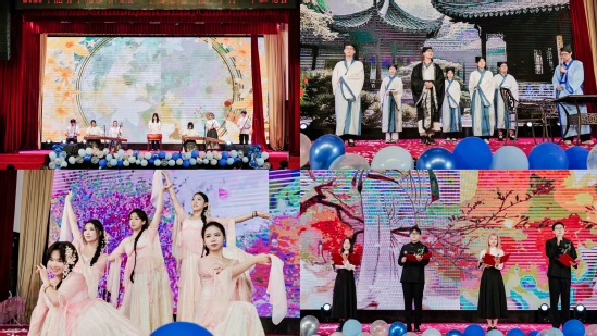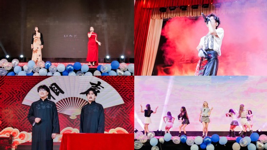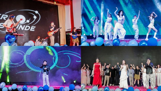 本屆畢業(yè)晚會精彩紛呈,高潮迭起。大型民樂合奏《盛世國樂》震撼開場,樂手們默契配合,將古箏、二胡、笛子等傳統(tǒng)樂器的音色交融,宛轉(zhuǎn)悠揚(yáng);古典舞《洛春賦》串《紅馬》別出心裁,柔美婉約的舞姿展現(xiàn)著詩意浪漫;現(xiàn)代舞《The Chase》融合多種街舞元素,展現(xiàn)著當(dāng)代大學(xué)生的青春與活力;歌曲演奏《紅薔薇白玫瑰》《瑪利亞》《It's My Life》等,同學(xué)們用獨(dú)特的嗓音和舞臺表現(xiàn)力,將青春里的甜蜜與苦澀娓娓道來;小品《萬松書院》與相聲《遺憾》在保留原經(jīng)典故事內(nèi)核的基礎(chǔ)上,加入了大量校園生活元素,幽默詼諧地展現(xiàn)了校園生活趣事,表達(dá)著離別之際對母校、師長的不舍與感激。晚會最后,全體演職人員登臺共同獻(xiàn)唱《我們的明天》,歡快靈動的歌聲映襯著同學(xué)們過往的校園生活影像。整場晚會既有青春激揚(yáng)的活力,又蘊(yùn)藏師生深厚的情誼,為畢業(yè)同學(xué)們的校園生活畫上溫暖圓滿的句點(diǎn)。