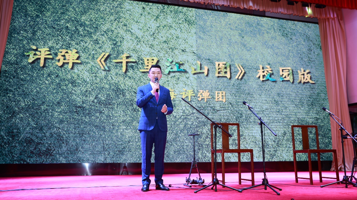 當評彈藝術遇上紅色經(jīng)典,一場跨越時空的藝術思政“大課堂”在我校大禮堂精彩開演。5月27日晚,上海評彈團五位國家一級演員攜中篇評彈《千里江山圖》走進上理,為師生們帶來一場充滿江南韻味與紅色情懷的視聽盛宴,學校師生、離退休老同志、校友等共約500人前來觀摩。