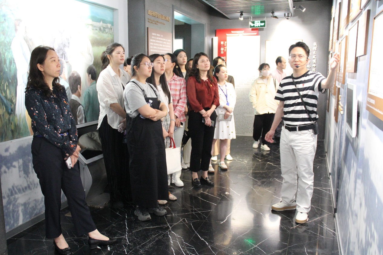 在解說員的帶領(lǐng)下,黨員們重溫了我國著名教育家陶行知開展教育改革的光輝一生。他從清貧農(nóng)舍到哥倫比亞大學,在求學途中就萌發(fā)了立志教育愛國親民信念,學有所成后在上海寶山大場創(chuàng)辦“山海工學團”開展平民教育為國育才。他帶領(lǐng)師生組建戰(zhàn)地服務(wù)團積極投身抗日救亡,抗戰(zhàn)勝利后又為和平民主極力奔走。陶行知先生被后人親切尊稱為“大先生”,其愛國育人的精神激勵著在場的每一位黨員,他以“捧著一顆心來,不帶半根草去”的赤子之忱,為人民革命教育事業(yè)奮斗終生,成為偉大教育家精神的真實寫照,其“生活即教育”等理念影響深遠,清正廉潔的品格更是精神典范。