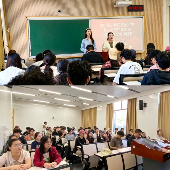 互動交流環(huán)節(jié),同學(xué)們就專業(yè)、課程、復(fù)習(xí)等問題踴躍提問,兩位老師耐心解答,現(xiàn)場氣氛熱烈。會議尾聲,老師勉勵大家珍惜時光、全力備考期末,祝愿取得佳績。本次會議滿載學(xué)校期望與個人憧憬,2024級少數(shù)民族預(yù)科生信心滿滿、整裝待發(fā),將以誠信和學(xué)識,在考核與分流中書寫青春答卷。學(xué)校以教育的溫度與深度,澆灌民族團結(jié)進步之花,鋪設(shè)精準(zhǔn)育人、誠信立人、生涯育成的特色之路,助力民族學(xué)子夢想綻放。