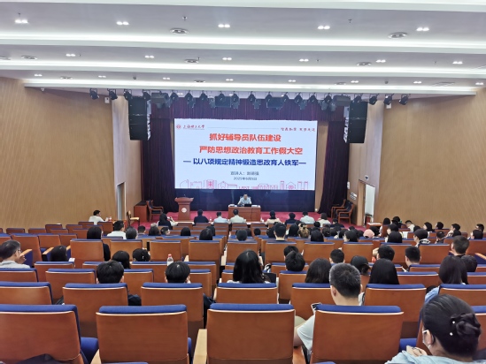 在專題輔導報告環(huán)節(jié),劉德強為大家作了題為“抓好輔導員隊伍建設(shè),嚴防思想政治教育工作假大空——以中央八項規(guī)定精神鍛造思政育人鐵軍”的專題輔導報告。報告圍繞深刻認識“假大空”之弊,輔導員隊伍作風建設(shè)面臨的現(xiàn)實挑戰(zhàn);正本清源,以中央八項規(guī)定精神為指引,筑牢嚴防“假大空”的思想根基;固本強基,以中央八項規(guī)定精神為標尺,鍛造政治過硬、本領(lǐng)高強的輔導員隊伍;機制護航,以中央八項規(guī)定精神為準則,構(gòu)建嚴防“假大空”的長效機制;淬煉作風,以中央八項規(guī)定精神為鏡鑒,永葆思政育人隊伍的純潔性五大方面,將中央八項規(guī)定精神核心要義作為主線貫穿在整個報告之中。他結(jié)合多年工作經(jīng)歷,系統(tǒng)全面地分析了輔導員隊伍建設(shè)所面臨的現(xiàn)實挑戰(zhàn),并提出了解決現(xiàn)實問題的應(yīng)對之策。他強調(diào),抓好輔導員隊伍建設(shè),嚴防思想政治教育工作“假大空”,是一項固本培元、立德樹人的戰(zhàn)略工程。他指出,唯有將“實”字貫穿始終—思想根基要夯實、能力本領(lǐng)要練實、工作機制要務(wù)實、工作作風要嚴實、育人成效要真實,才能鍛造出一支讓黨放心、讓學生滿意的輔導員鐵軍。他殷切希望全體學工人深入貫徹中央八項規(guī)定精神學習教育,將所學所思內(nèi)化于心、外化于行,以務(wù)實態(tài)度對待育人工作。