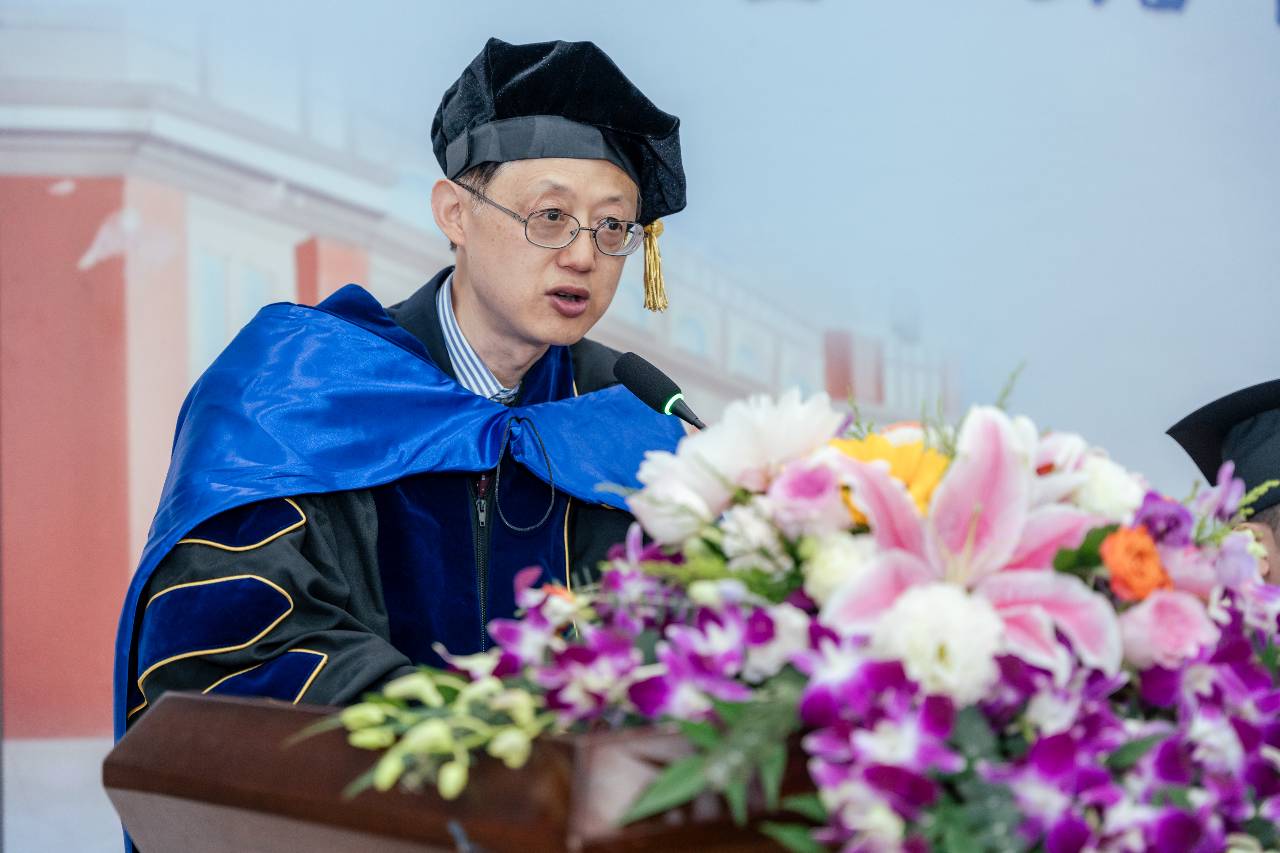 隨后,Tao Wang教授代表皇后學院向畢業(yè)生們表示誠摯的問候,對上海理工大學領導、老師、家長們對教育的辛勤付出表示感謝。Tao Wang教授祝愿畢業(yè)生們保持心懷夢想、不畏失敗的美好品質踏上未來的成功之路。