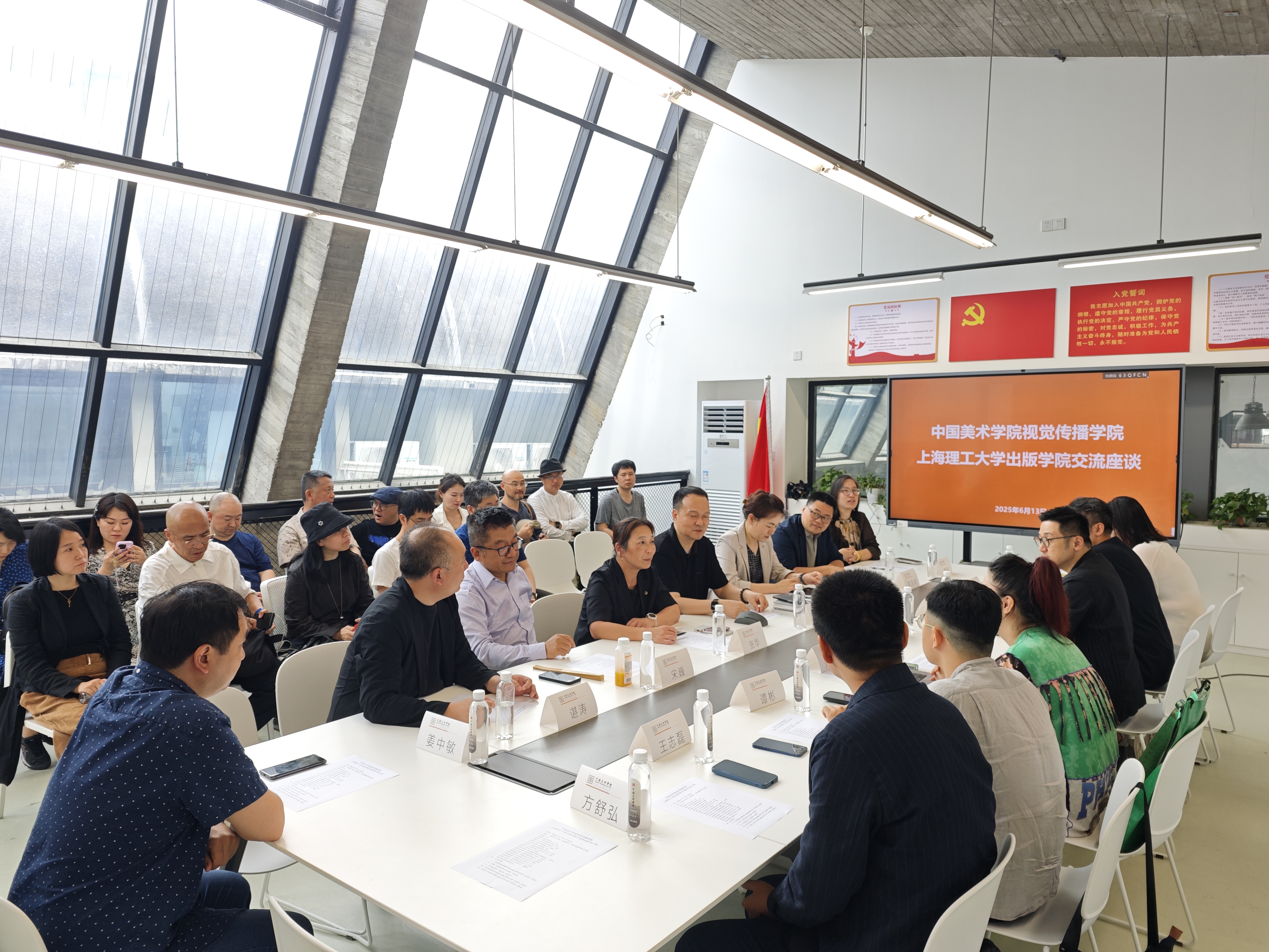 在下午的交流座談會(huì)上,中國(guó)美術(shù)學(xué)院視覺傳播學(xué)院副院長(zhǎng)劉益紅、黨委委員方舒弘,雙方院系負(fù)責(zé)人及教師代表參會(huì)。