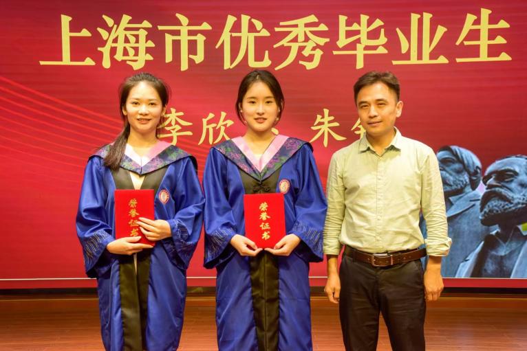 吳軍宣讀2025屆優(yōu)秀畢業(yè)生表彰名單。郭根依次為上海市優(yōu)秀畢業(yè)生、上海理工大學優(yōu)秀畢業(yè)生及馬克思主義學院優(yōu)秀畢業(yè)生頒發(fā)榮譽證書。