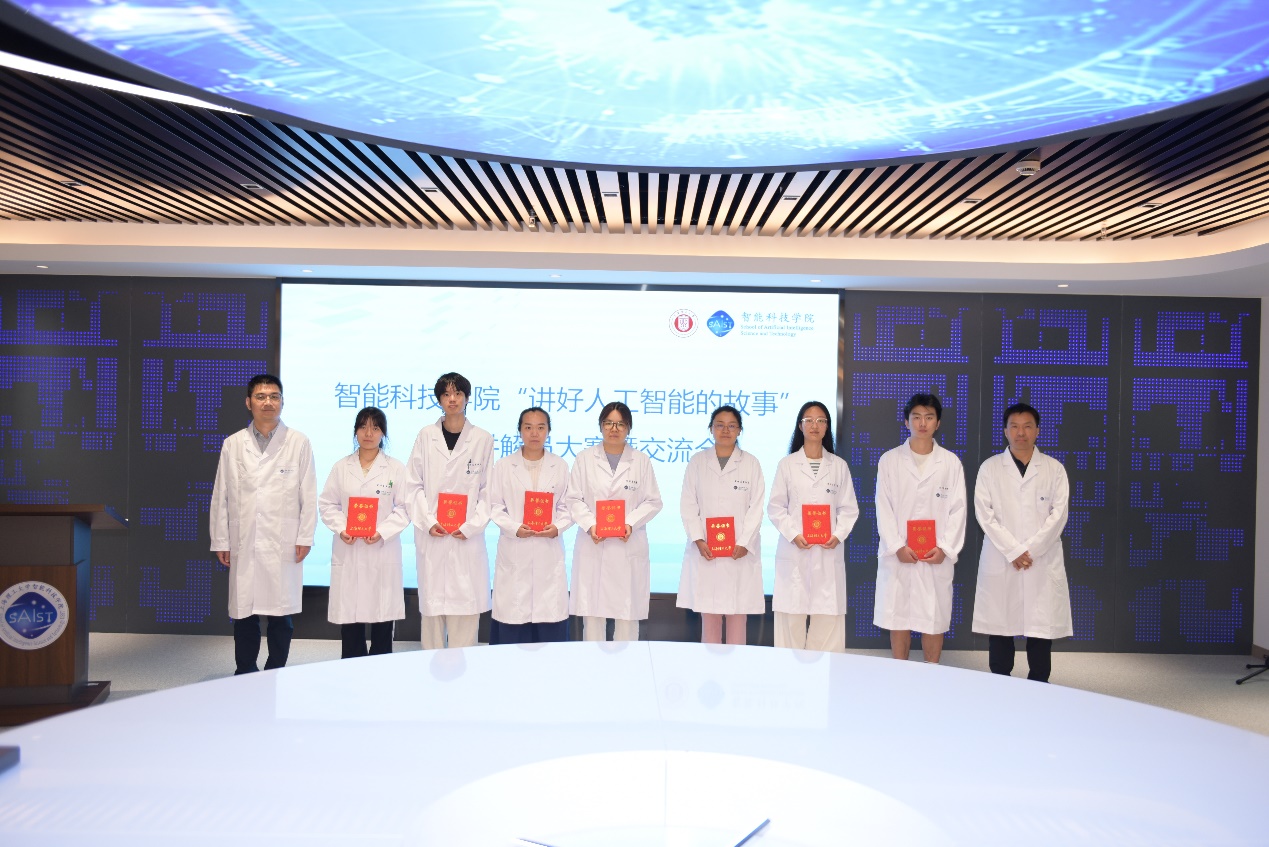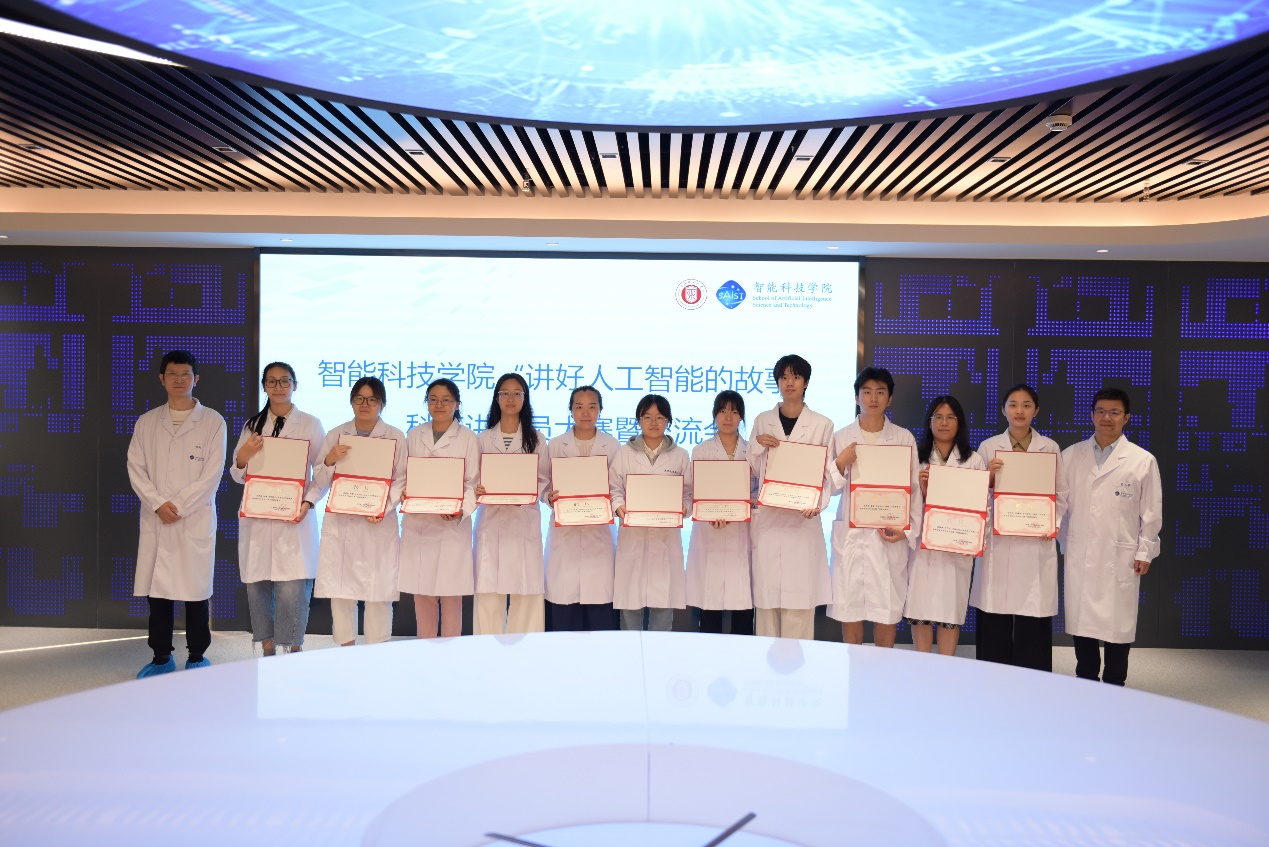 此次活動(dòng)分別評(píng)選出了“金牌講解員”和“優(yōu)秀講解員”,并向他們頒發(fā)了學(xué)院“光子科創(chuàng)之窗”科普講解員聘書(shū)。其中何巧芝、蘆馨雅、朱晨和陳新宇等四人獲得“金牌講解員”稱號(hào)。格致創(chuàng)新班四位學(xué)生在此次活動(dòng)中嶄露頭角,其中王涵桐同學(xué)同時(shí)參加中英文兩個(gè)賽道的展示,給評(píng)委團(tuán)留下了深刻的印象,也彰顯了智能科技學(xué)院拔尖創(chuàng)新人才培養(yǎng)效果。