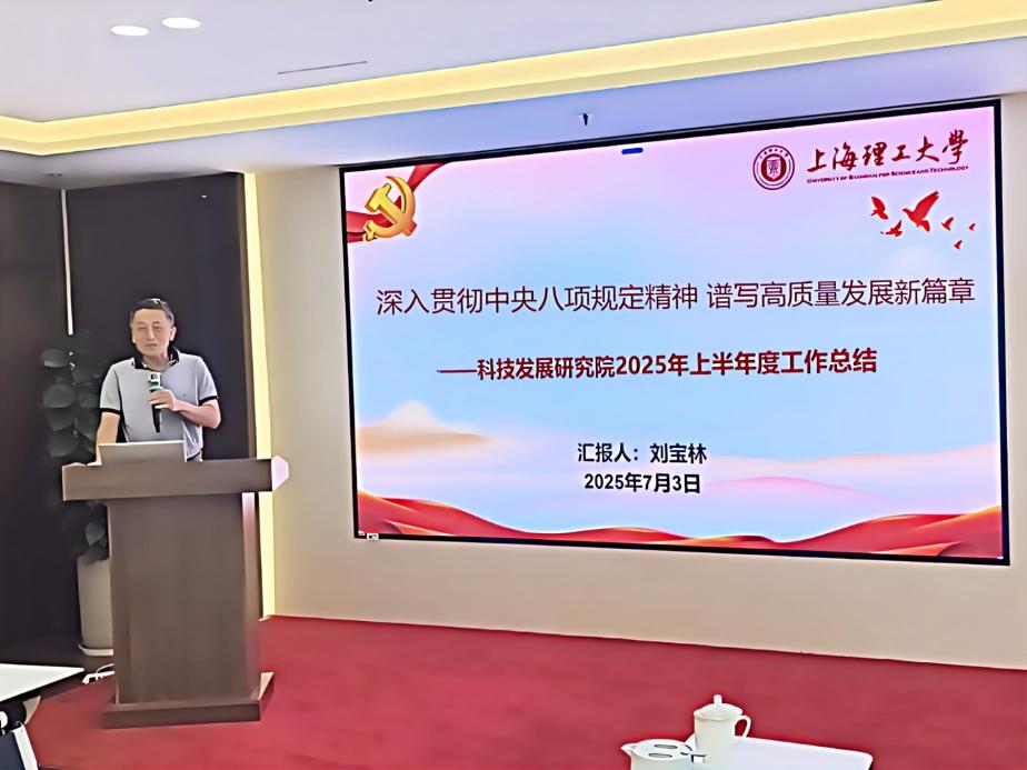 為深入學習貫徹中央八項規(guī)定精神,將作風建設(shè)與科研管理工作深度融合,以務(wù)實、高效、廉潔的科研管理助推學校高質(zhì)量發(fā)展,7月3日下午,科技發(fā)展研究院召開專題黨課暨2025年上半年度工作總結(jié)會。副校長張眾、科技發(fā)展研究院院長劉寶林、資深科研管理專家邵傳芳出席會議,科研院全體人員參加會議。會議由先進技術(shù)研究院院長黃烜主持。