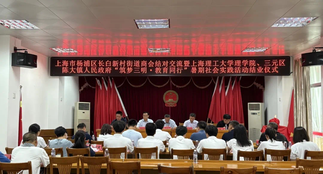 7月9日上午,由上海理工大學(xué)理學(xué)院聯(lián)合楊浦區(qū)長白新村街道商會、三明市三元區(qū)陳大鎮(zhèn)人民政府共同主辦的“筑夢三明·教育同行”暑期社會實踐活動圓滿收官,活動結(jié)業(yè)儀式暨上海理工大學(xué)大學(xué)生社會實踐基地揭牌典禮在陳大鎮(zhèn)舉行。三明市三元區(qū)陳大鎮(zhèn)黨委書記鄧天華、鎮(zhèn)長李永,三元區(qū)團(tuán)區(qū)委書記陳驍、長白新村街道商會會長李漢卿和理學(xué)院黨委書記孟寶全等出席活動,與滬明兩地政校企代表共啟校地合作新篇章。