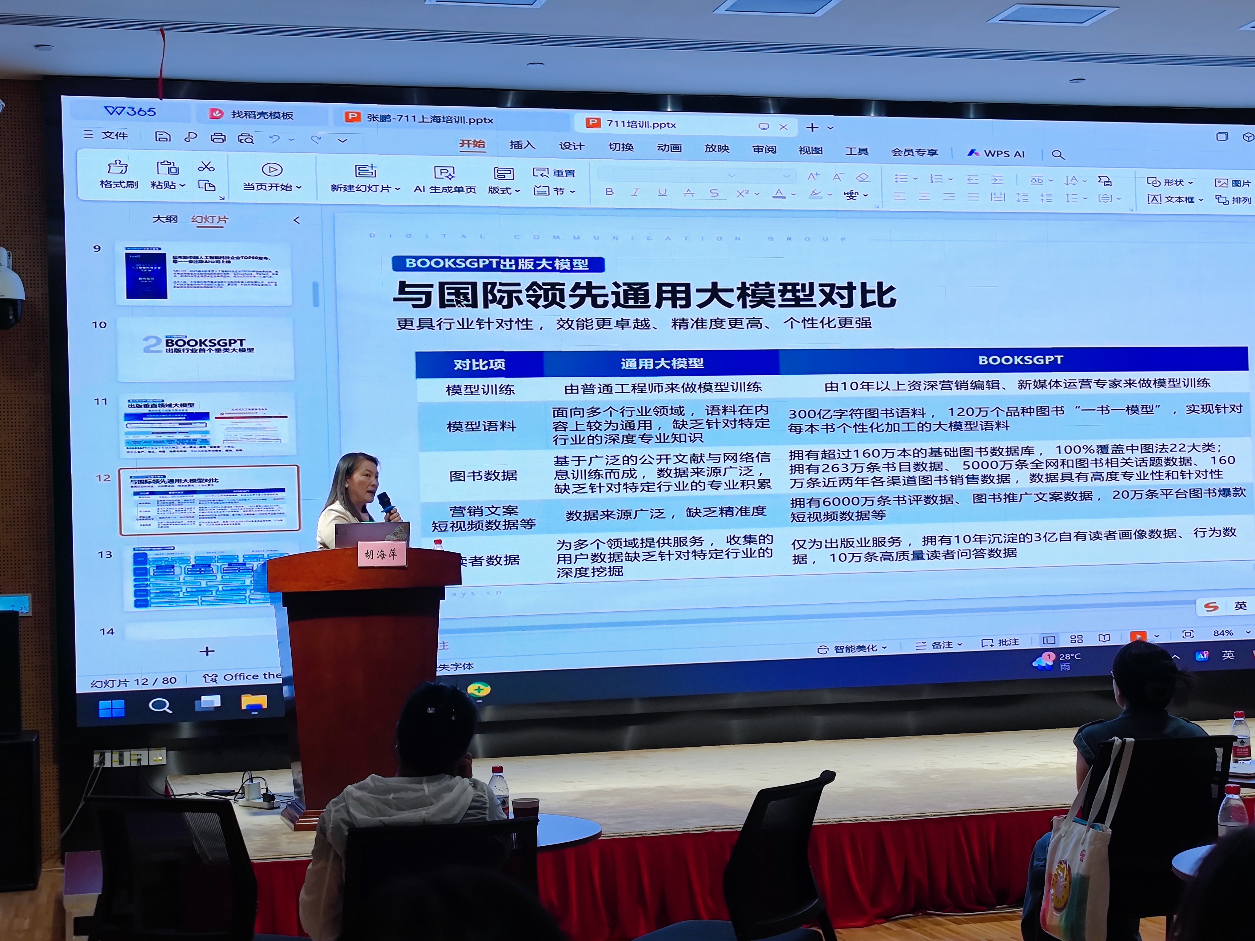 在實(shí)操環(huán)節(jié),AI產(chǎn)品訓(xùn)練師周茹與唐皓楠帶領(lǐng)訓(xùn)練營(yíng)學(xué)員沉浸式體驗(yàn)BOOKSGPT大模型,解鎖AI在出版全流程的實(shí)用技能??焖偕刹邉澃?、創(chuàng)作圖書(shū)內(nèi)容、教輔智能出題,外文書(shū)稿預(yù)審、精準(zhǔn)審校、圖書(shū)封面設(shè)計(jì)、圖書(shū)數(shù)字化轉(zhuǎn)化、營(yíng)銷(xiāo)物料制作……覆蓋出版全鏈條的AI應(yīng)用場(chǎng)景一一呈現(xiàn)。實(shí)操過(guò)程中,訓(xùn)練營(yíng)學(xué)員對(duì)比了AI編審校與傳統(tǒng)編審校在流程中的效率差異,切實(shí)體會(huì)到了AI賦能帶來(lái)的出版效能躍升。