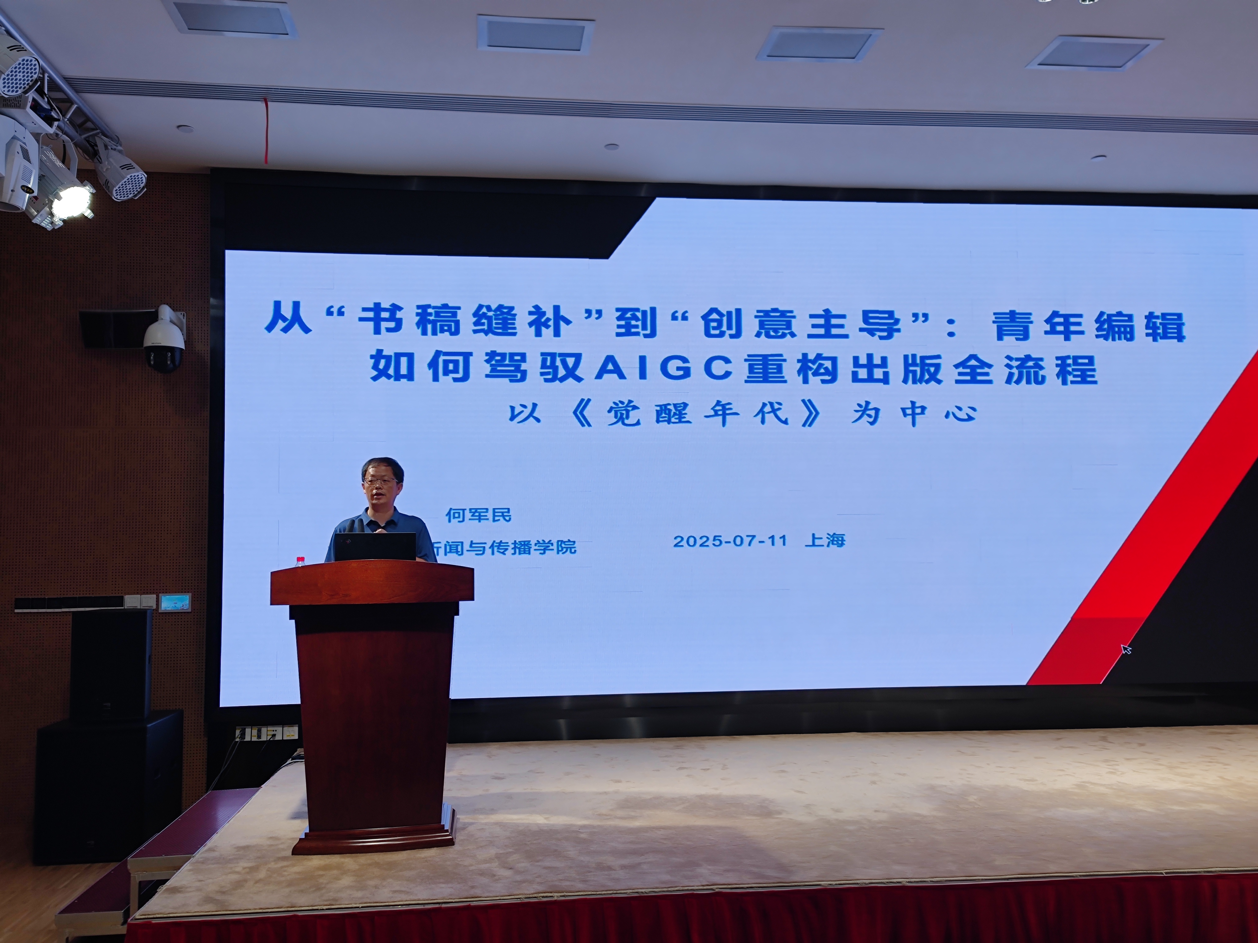 何軍民教授以“從‘書(shū)稿縫補(bǔ)’到‘創(chuàng)意主導(dǎo)’——青年編輯如何駕馭AIGC重構(gòu)出版全流程”為主題,通過(guò)《覺(jué)醒年代》的出版實(shí)踐為核心案例,系統(tǒng)解析了生成式人工智能在圖書(shū)出版全流程中的具體應(yīng)用。他指出,AIGC深度介入出版各環(huán)節(jié),從選題策劃、內(nèi)容創(chuàng)作、編輯加工到傳播推廣,助力出版流程從經(jīng)驗(yàn)驅(qū)動(dòng)邁向人機(jī)協(xié)同新范式,青年編輯應(yīng)當(dāng)更專(zhuān)注于“政治導(dǎo)向把控、文化價(jià)值挖掘、讀者需求洞察”等核心職能,真正實(shí)現(xiàn)從“書(shū)稿加工者”到“出版全流程主導(dǎo)者”的角色升級(jí)。