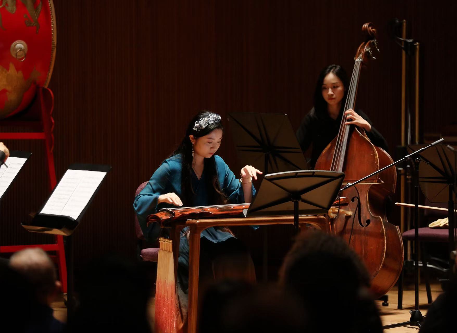 此次音樂會以《黃帝內(nèi)經(jīng)》中的“五音療疾”理論為基礎(chǔ),將交響樂、民樂與中醫(yī)五音巧妙融合,作為巢氏導(dǎo)引法的非遺代表性傳承人,徐海朋在音樂會上全程“串場”,學生參與創(chuàng)制過程及現(xiàn)場協(xié)助互動。徐海朋副教授介紹道:天有五音,人有五臟,導(dǎo)引法與五音能量相通,呵字吐納對心、噓字吐納入肝、呼字吐納入脾、呬字吐納入肺、吹字吐納入腎。通過導(dǎo)引法幫助觀眾逐步達到身心放松的狀態(tài),更好地沉浸于音樂療愈之中。這種音樂融合運動的沉浸式體驗,讓觀眾們耳目一新。音樂會現(xiàn)場,民族樂器中國鼓、塤、笛、簫以及打擊樂器作為和聲基礎(chǔ)部分等共同奏響,為觀眾帶來了《陽關(guān)三疊》《梅花三弄》《聲聲慢》《煙雨唱揚州》等經(jīng)典曲目的全新演繹。音樂會與導(dǎo)引法互動體驗的結(jié)合,是一次極具創(chuàng)新意義的嘗試,也是對中華優(yōu)秀傳統(tǒng)文化創(chuàng)造性轉(zhuǎn)化、創(chuàng)新性發(fā)展的有益探索。
