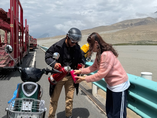 然而,這份煎熬很快被溫暖化解。附近村落的維吾爾族、塔吉克族居民聞?dòng)嵑?,紛紛提著保溫桶自發(fā)給受困的人員送來(lái)熱湯、熱粥、熱水等,“能幫一個(gè)是一個(gè)嘛!”當(dāng)聽(tīng)到大家的感謝時(shí),一位騎著摩托的叔叔靦腆地回答道。與此同時(shí),當(dāng)?shù)匚渚俦?、公路養(yǎng)護(hù)人員、村干部等組成的搶險(xiǎn)隊(duì)伍正爭(zhēng)分奪秒地清理淤泥石塊,操作機(jī)械打通受阻路段,力爭(zhēng)盡快讓受困人員安全通過(guò)。