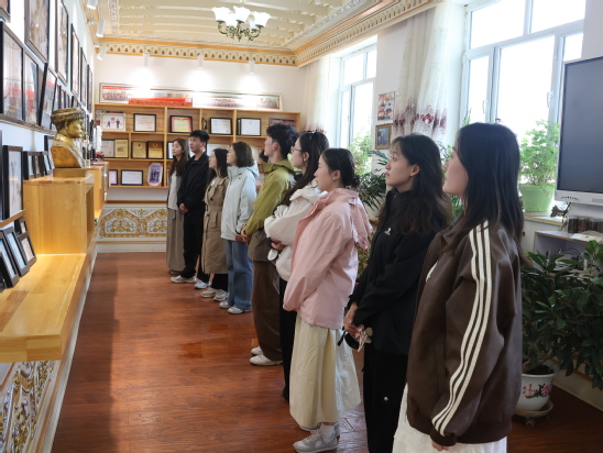泛黃的巡邏日志、磨舊的護(hù)邊馬靴、定格著笑容的老照片…… 7月19日,研學(xué)團(tuán)師生走進(jìn)拉齊尼?巴依卡紀(jì)念館。在一幅幅珍貴影像與一件件實(shí)物展品間,“帕米爾雄鷹”用生命守護(hù)家國(guó)的赤子情懷感動(dòng)了每一位在場(chǎng)師生。展廳墻上,“這輩子要一直做守護(hù)邊疆的雄鷹” 的誓言被鄭重鐫刻,師生們駐足良久,靜靜聆聽(tīng)著拉齊尼一家三代戍邊護(hù)邊的故事:從祖父協(xié)助邊防戰(zhàn)士踏遍雪山峽谷,到父親在暴風(fēng)雪中為巡邏隊(duì)引路,再到拉齊尼冒死救助冰窟孩童、最終用生命踐行護(hù)疆承諾。這是刻進(jìn)基因的家國(guó)摯愛(ài),是融入血脈的民族團(tuán)結(jié)堅(jiān)守?!八蒙嬖V我們,愛(ài)國(guó)從不是抽象的口號(hào),而是危難時(shí)挺身而出的擔(dān)當(dāng)?!睂W(xué)生王婕曄的感慨,道出了在場(chǎng)所有人的心聲。
