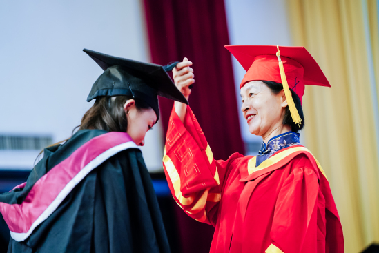 學(xué)位授予儀式上,中英國際學(xué)院黨委副書記、副院長(主持行政工作)、代理執(zhí)行院長張崢宣讀畢業(yè)生名單。中英雙方院校領(lǐng)導(dǎo)為畢業(yè)生撥穗正冠、握手勉勵(lì),并與畢業(yè)生合影留念。