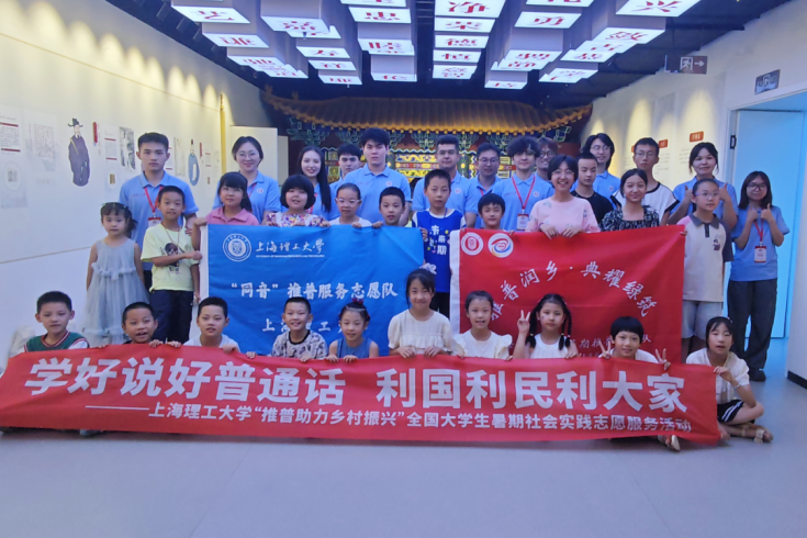 上海理工大學(xué)推普學(xué)生志愿者團(tuán)隊(duì)與當(dāng)?shù)厣倌旰嫌傲裟?/p>