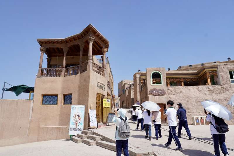學生們游覽喀什地區(qū)高臺民居