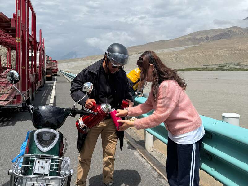 當上海理工大學、上海健康醫(yī)學院的師生們從紅其拉甫國門返程時,偶遇了一場泥石流——湍急的泥漿裹挾著大石塊沖斷了道路,數(shù)以千計的車輛被困在蜿蜒的山路上。缺水缺糧的困境讓原本疲憊的師生們更添煎熬。