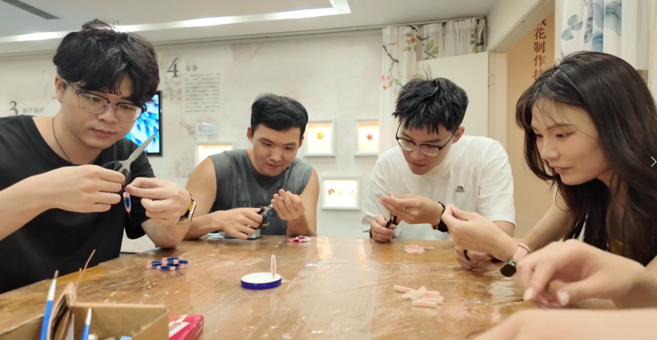 八月初,學(xué)院社會(huì)實(shí)踐團(tuán)隊(duì)走進(jìn)古都南京的一處?kù)o謐工坊,開啟了為期三天的“非遺薪火”絨花制作體驗(yàn)之旅。在柔和的燈光下,90后非遺傳承人李老師指尖輕捻,一抹嫣紅悄然綻放。她從古老的染絲技法教起,如何提取植物染料,怎樣控制水溫與時(shí)間;再到“勾條”的巧勁與“打尖”的精準(zhǔn),每一個(gè)動(dòng)作都似在低語(yǔ),傳遞著跨越千年的工藝密碼。同學(xué)們圍坐案前,蠶絲在指尖纏繞、銅絲在掌心彎曲。漸漸地,零散的絲線在一次次“傳花”中漸次成型,最終化作一枚枚栩栩如生的絨花胸針——梅瓣纖柔,秋蟬輕盈,每一件都凝結(jié)著時(shí)光與專注。