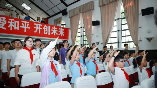 在上海理工大學(xué)劉湛恩烈士故居前,大中小學(xué)生共同翻開一段關(guān)于“以校為營、以筆為槍”的校史篇章。