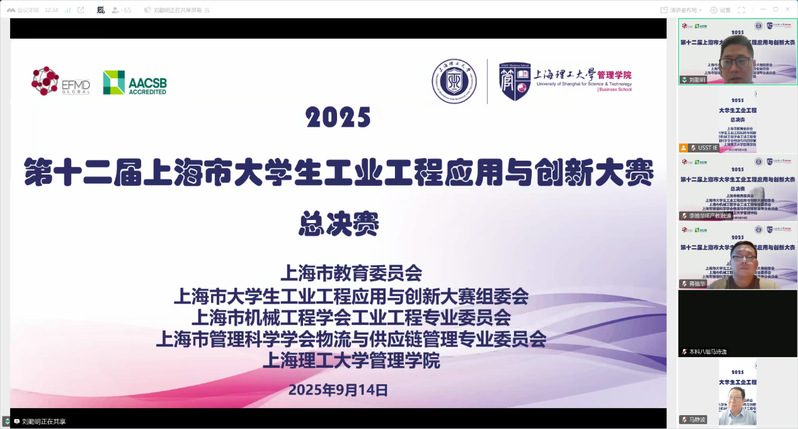 9月14日,2025年第十二屆上海市大學生工業(yè)工程應用與創(chuàng)新大賽總決賽成功舉辦。本次大賽由上海市教委主辦,上海市機械工程學會、上海市機械工程學會工業(yè)工程專業(yè)委員會、上海市管理科學學會物流與供應鏈管理專業(yè)委員會、上海理工大學管理學院聯(lián)合承辦,以線上會議形式召開,為進一步推動工業(yè)工程專業(yè)深化產(chǎn)教融合、強化協(xié)同育人提供平臺支撐。教育部工業(yè)工程類專業(yè)教指委副主任、上海市機械工程學會工業(yè)工程專業(yè)委員會主任、上海交通大學特聘教授江志斌,上海理工大學管理學院黨委書記馬靜波,上海市大學生工業(yè)工程應用與創(chuàng)新大賽主席、上海理工大學教授葉春明出席并致辭。大賽由管理學院工業(yè)與系統(tǒng)工程系主任劉勤明主持。