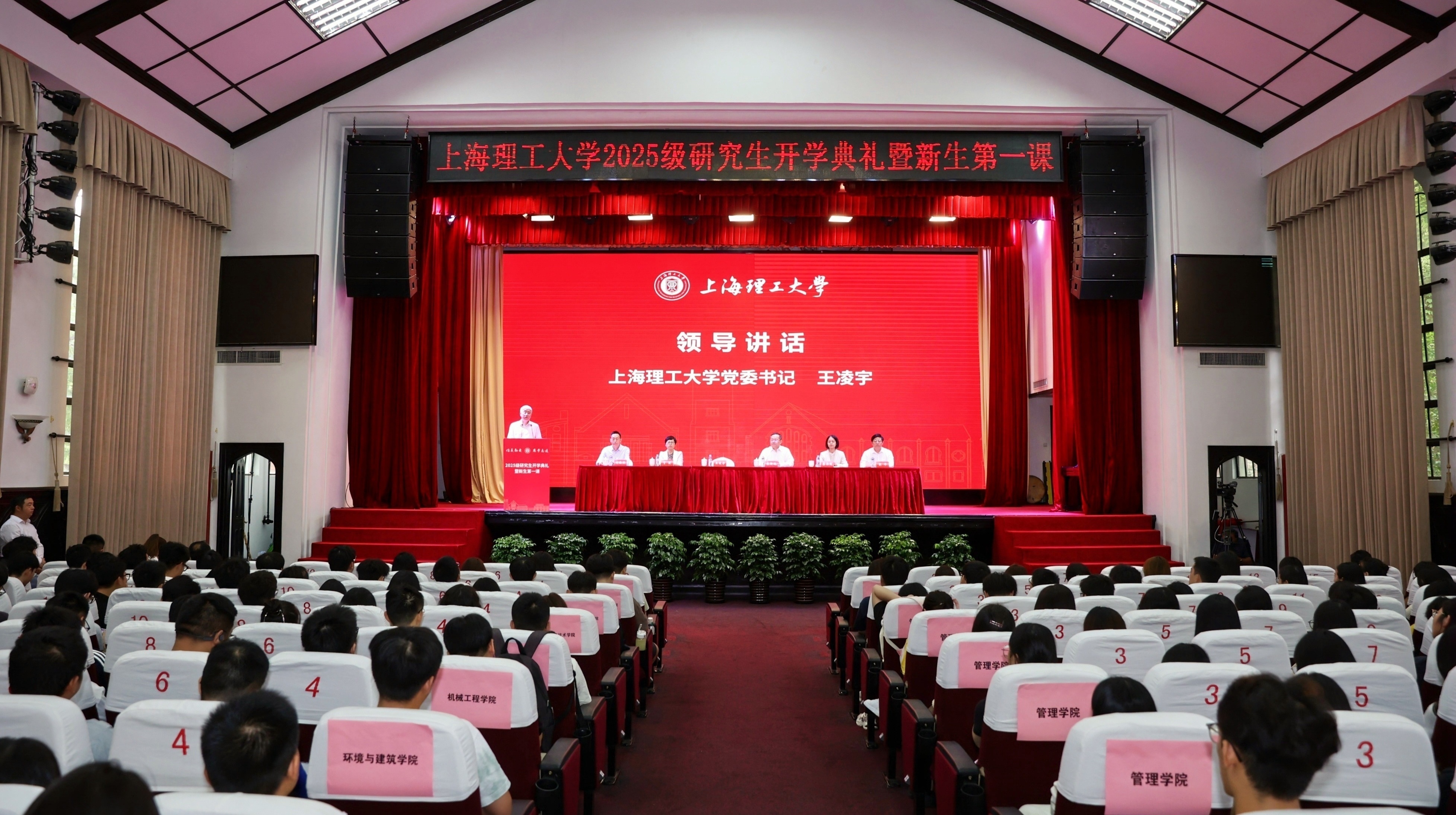 9月18日,上海理工大學(xué)2025級(jí)研究生開學(xué)典禮暨新生第一課在學(xué)校大禮堂舉行,本次開學(xué)典禮采取主分會(huì)場及線上線下相結(jié)合的方式進(jìn)行,來自全國各地的4200余名研究生新生跨越山海相聚于此,共赴充滿無限可能的新征程。校黨委書記王凌宇,校長朱新遠(yuǎn),校黨委副書記賀莉,校黨委副書記、紀(jì)委書記趙寧,校黨委副書記、副校長劉德強(qiáng),副校長蔡永蓮,總會(huì)計(jì)師趙明,副校長張華,副校長張眾,副校長岳海洋,各職能部處負(fù)責(zé)人、各學(xué)院負(fù)責(zé)人,導(dǎo)師代表,研究生輔導(dǎo)員,研究生教學(xué)秘書,研究生院及研工部全體工作人員出席活動(dòng),劉德強(qiáng)主持開學(xué)典禮。