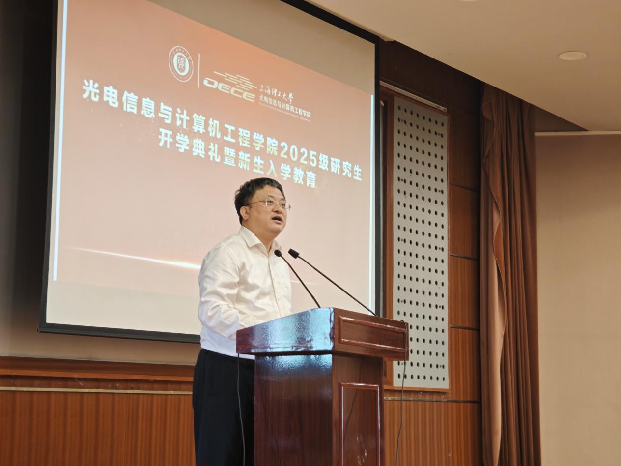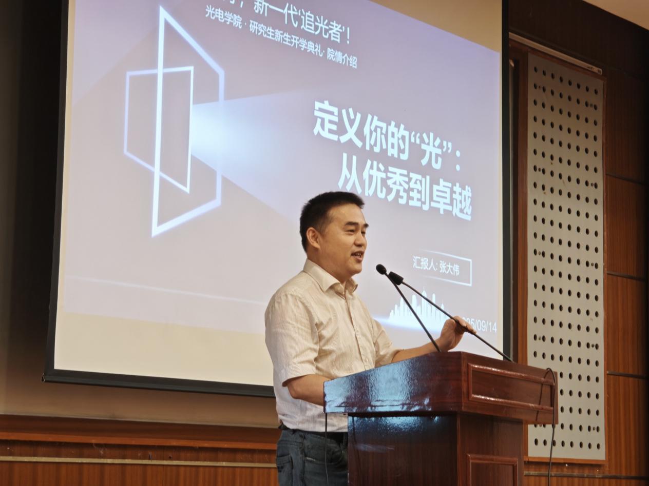 學(xué)院院長、黨委副書記張大偉以“光電新時代,奮斗正當(dāng)時”為題,向同學(xué)們介紹了學(xué)院發(fā)展近況與未來規(guī)劃,并分享近期學(xué)科建設(shè)與科研創(chuàng)新方面取得的系列突破。站在新起點上,他向新生提出三點期望:勇于探索未知,突破學(xué)科邊界;保持國際視野,追蹤科技前沿;持續(xù)超越自我,實現(xiàn)多元成長。他勉勵大家既要“追逐光”,更要“成為光”,以實際行動為國家光電事業(yè)貢獻(xiàn)青春力量。