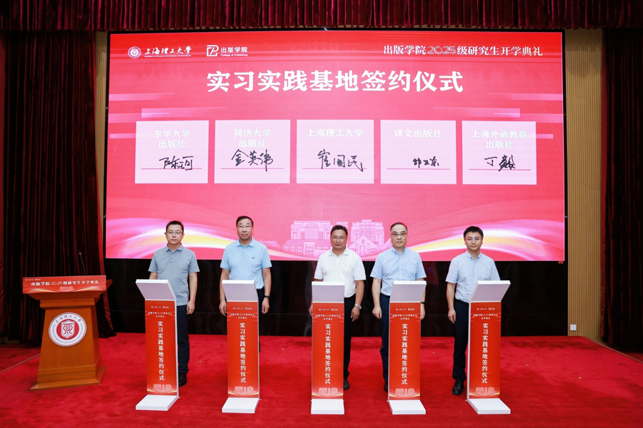 當(dāng)天,學(xué)校與譯文出版社、同濟(jì)大學(xué)出版社、上海外語教育出版社、東華大學(xué)出版社、澎湃新聞等8家企事業(yè)單位簽訂人才聯(lián)合培養(yǎng)協(xié)議,將通過共建實踐基地、聯(lián)合開發(fā)課程、雙導(dǎo)師指導(dǎo)等模式共同賦能出版人才培養(yǎng)。