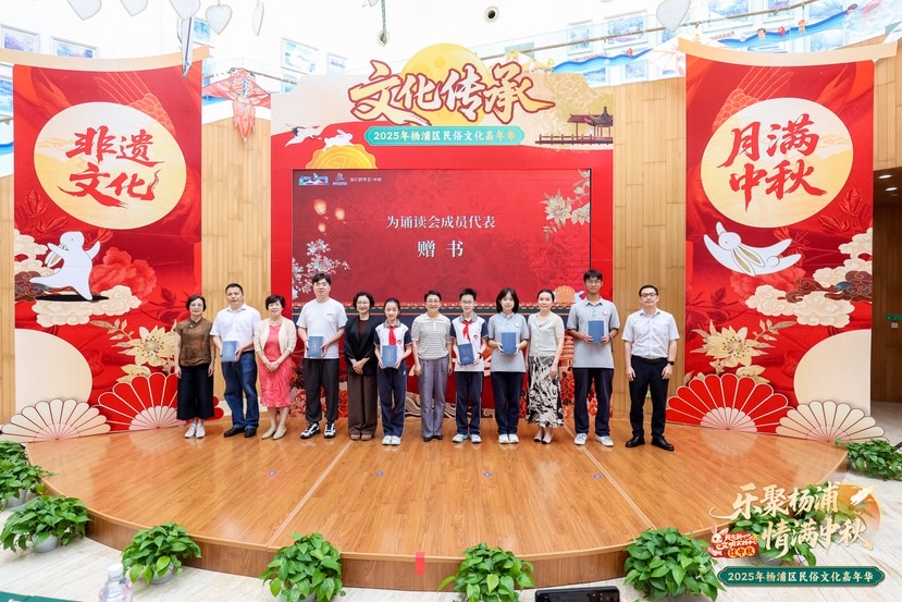活動(dòng)開幕儀式亮點(diǎn)紛呈,不僅承載著文化傳承的莊重意義,更凝聚著多方共建的合力?;顒?dòng)現(xiàn)場(chǎng)領(lǐng)導(dǎo)為“楊浦中華文化誦讀會(huì)”揭牌,并為誦讀會(huì)成員代表贈(zèng)書,寓意著一個(gè)共讀經(jīng)典、陶冶情操、滋養(yǎng)精神的交流平臺(tái)得以搭建,積淀千年的中華文明在聲聲誦讀中煥發(fā)勃勃生機(jī)?;顒?dòng)現(xiàn)場(chǎng)還邀請(qǐng)到專注非遺傳承的科技企業(yè)代表疊紙介紹如何創(chuàng)新運(yùn)用科技力量致力于非遺文化的傳承推廣,引起在場(chǎng)觀眾熱烈反響。