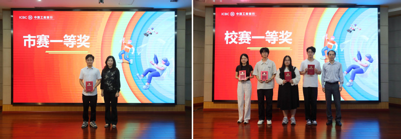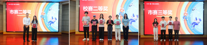 在第15屆“工行杯”金融科技創(chuàng)新大賽頒獎環(huán)節(jié)中,房志明、梅竹影等領(lǐng)導(dǎo)、老師分別為獲得市賽和校賽的特等獎、一等獎、二等獎、三等獎的選手頒發(fā)獲獎證書和獎品。顧貝伶為市賽及校賽優(yōu)秀指導(dǎo)老師頒發(fā)證書。