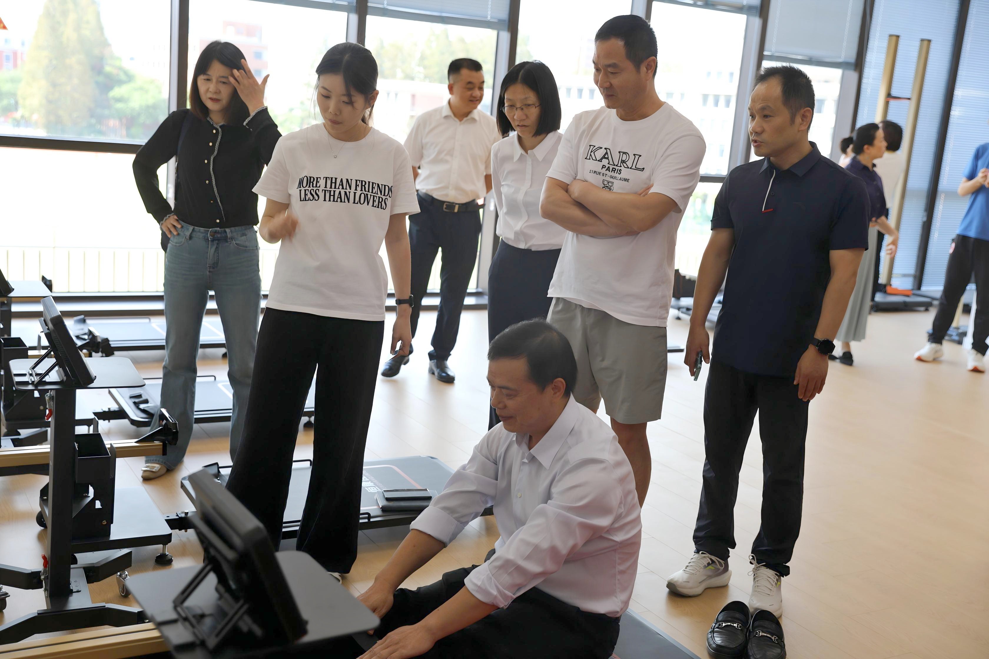 湖南省衛(wèi)生工會(huì)一行首先參觀了雷潔瓊生平事跡展,學(xué)校黨委統(tǒng)戰(zhàn)部副部長樊小軍為湖南省衛(wèi)生工會(huì)一行作生動(dòng)講解。大家對雷潔瓊先生的生平事跡與教育情懷表達(dá)了深深敬意,對上海理工大學(xué)人文底蘊(yùn)與育人理念有了清晰了解。隨后,一行前往學(xué)校體育部體育健身中心參觀,圍繞中心的運(yùn)動(dòng)場地配置、健康課程設(shè)置等內(nèi)容展開深入探討。在體育健身中心,負(fù)責(zé)人董海軍老師和馬成老師詳細(xì)介紹了學(xué)校在學(xué)生體質(zhì)監(jiān)測、健康數(shù)據(jù)評估、個(gè)性化運(yùn)動(dòng)指導(dǎo)等方面的服務(wù)模式、特色課程及配套設(shè)施設(shè)備,雙方就依托專業(yè)資源推動(dòng)師生健康管理的實(shí)踐成果展開深入交流。