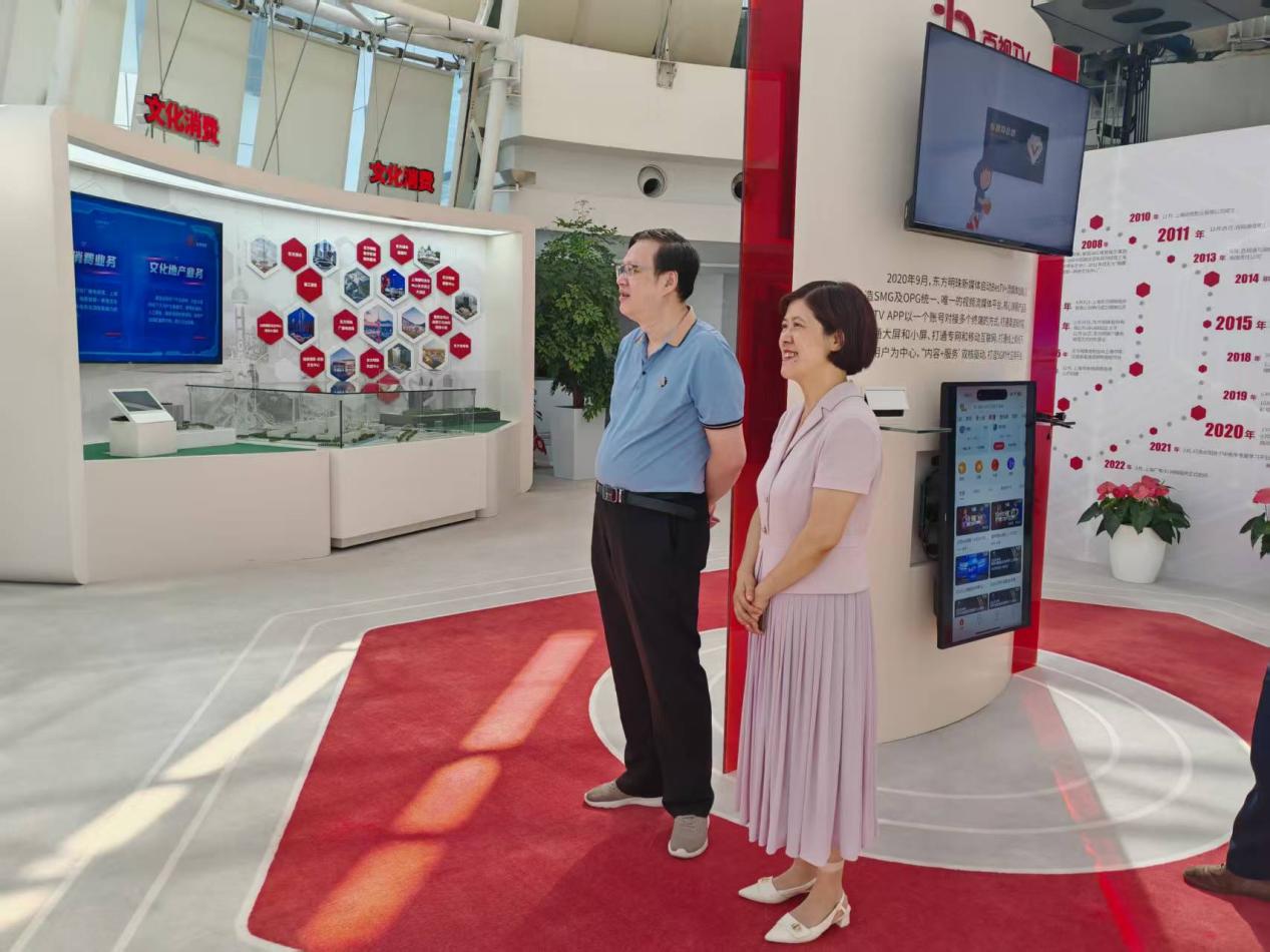 在黃凱的陪同下,外語學院一行參觀了東方明珠新媒體股份有限公司的企業(yè)展示區(qū)。參觀過程中,黃凱詳細介紹了公司的發(fā)展歷程、核心業(yè)務(wù)布局以及在媒體融合與數(shù)字化轉(zhuǎn)型方面的戰(zhàn)略實踐與創(chuàng)新成果。