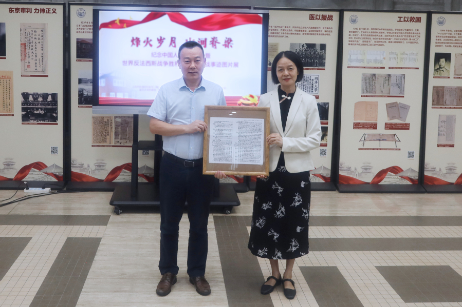 10月16日,上海理工大學(xué)第三屆檔案校史文化月系列活動之“烽火歲月 山河脊梁”紀(jì)念中國人民抗日戰(zhàn)爭暨世界反法西斯戰(zhàn)爭勝利80周年抗戰(zhàn)事跡圖片展上海理工大學(xué)巡展開幕式與“解碼紅色記憶:檔案利用與傳播”專家研討會共同舉辦。上海理工大學(xué)副校長蔡永蓮、楊浦區(qū)委黨史研究室(區(qū)方志辦)主任黃偉一、楊浦區(qū)檔案局(館)長史英俊、楊浦區(qū)檔案館副館長彭紹鈞、上海財經(jīng)大學(xué)檔案館(校史館)/博物館館長喻世紅、復(fù)旦大學(xué)校史研究室主任錢益民、同濟(jì)大學(xué)檔案館副館長王晶晶、上海體育大學(xué)檔案館(校史館)副館長龔燕萍、海軍軍醫(yī)大學(xué)教研保障中心檔案室副主任陳穎、上海理工大學(xué)校團(tuán)委副書記楊陽出席活動,檔案館全體工作人員和學(xué)生志愿講解員代表參加?;顒佑蓹n案館館長孔娜主持。