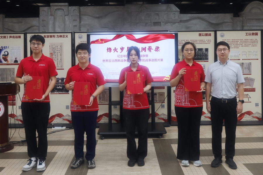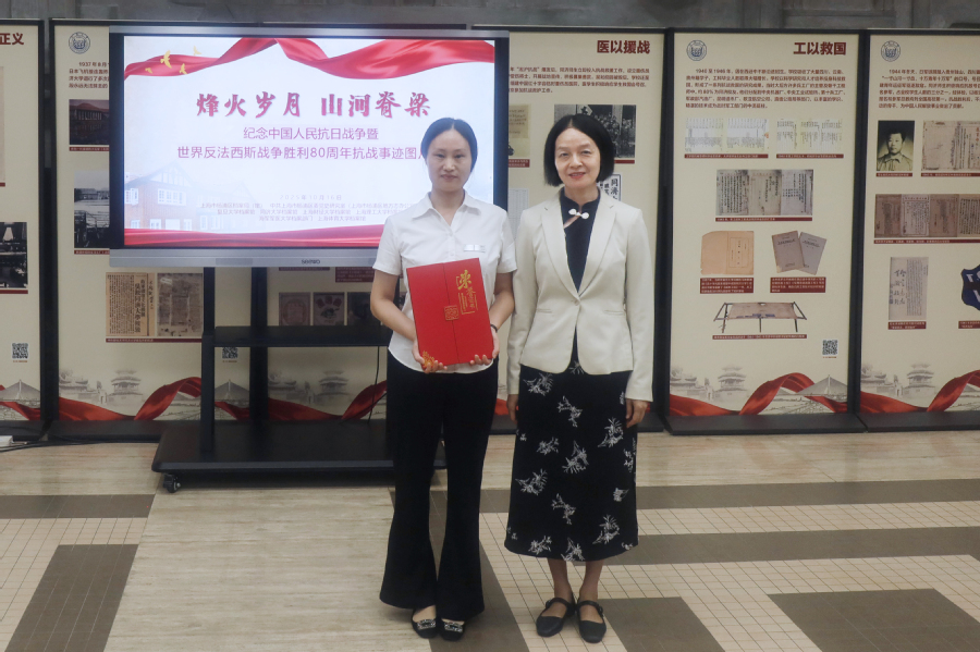 開幕式上,蔡永蓮、彭紹鈞、楊陽分別為榮獲“金牌服務(wù)獎”“金牌講解員”“優(yōu)秀講解員”的講解員頒獎,肯定了他們在紅色文化傳播中的貢獻(xiàn),同時激勵更多師生參與文博場館講解工作。楊浦區(qū)委黨史研究室(區(qū)方志辦)主任黃偉一向各高校代表贈書,為高??箲?zhàn)歷史研究與黨史學(xué)習(xí)教育提供資料支持。楊浦區(qū)檔案局(館)長史英俊向上海理工大學(xué)贈送珍貴檔案史料復(fù)制件,為學(xué)校豐富校史資源增添了重要素材。