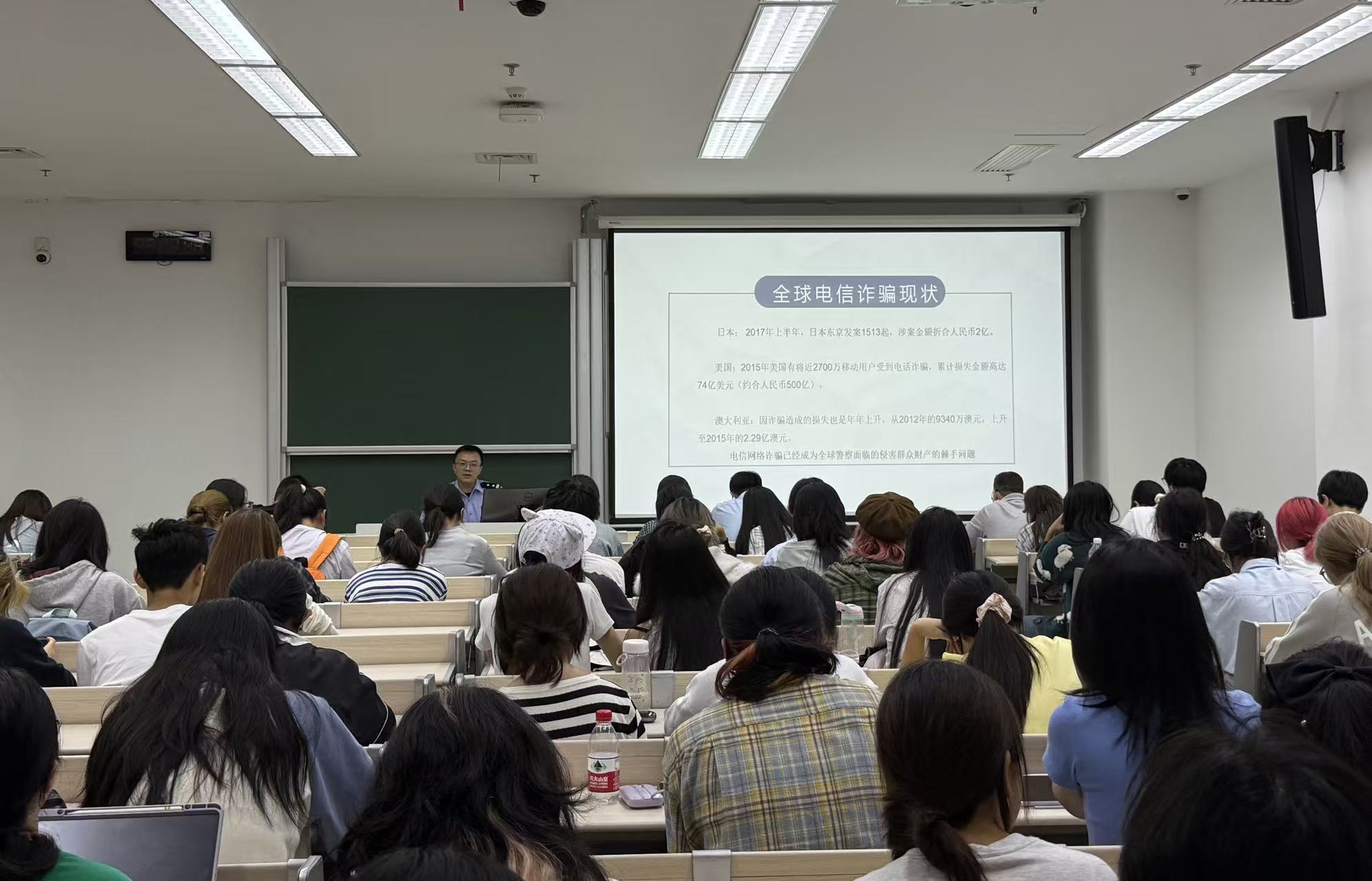 范華為在場(chǎng)同學(xué)作了一場(chǎng)詳實(shí)生動(dòng)的防范電信網(wǎng)絡(luò)詐騙專題報(bào)告,他憑借其深厚的專業(yè)積淀與一線辦案經(jīng)驗(yàn),從當(dāng)前社會(huì)高度關(guān)注的“緬北電信詐騙”現(xiàn)象切入,深刻揭露了跨境詐騙犯罪的產(chǎn)業(yè)鏈條與運(yùn)作黑幕,并透過“保護(hù)境外中國(guó)公民安全”等典型案例,彰顯了國(guó)家層面鐵腕打擊犯罪、守護(hù)人民財(cái)產(chǎn)安全的堅(jiān)定決心。隨后,他對(duì)“冒充公檢法”“精準(zhǔn)投資理財(cái)騙局”等高發(fā)類案件的手法與話術(shù)進(jìn)行了系統(tǒng)拆解,并輔以社會(huì)知名人士遭遇詐騙的實(shí)例,極大提升了警示教育的針對(duì)性與說服力。最后,為使同學(xué)們掌握根本性的辨別能力,他還清晰闡釋了正規(guī)的警方執(zhí)法流程,為同學(xué)們提供了一套實(shí)用有效的識(shí)別指南。