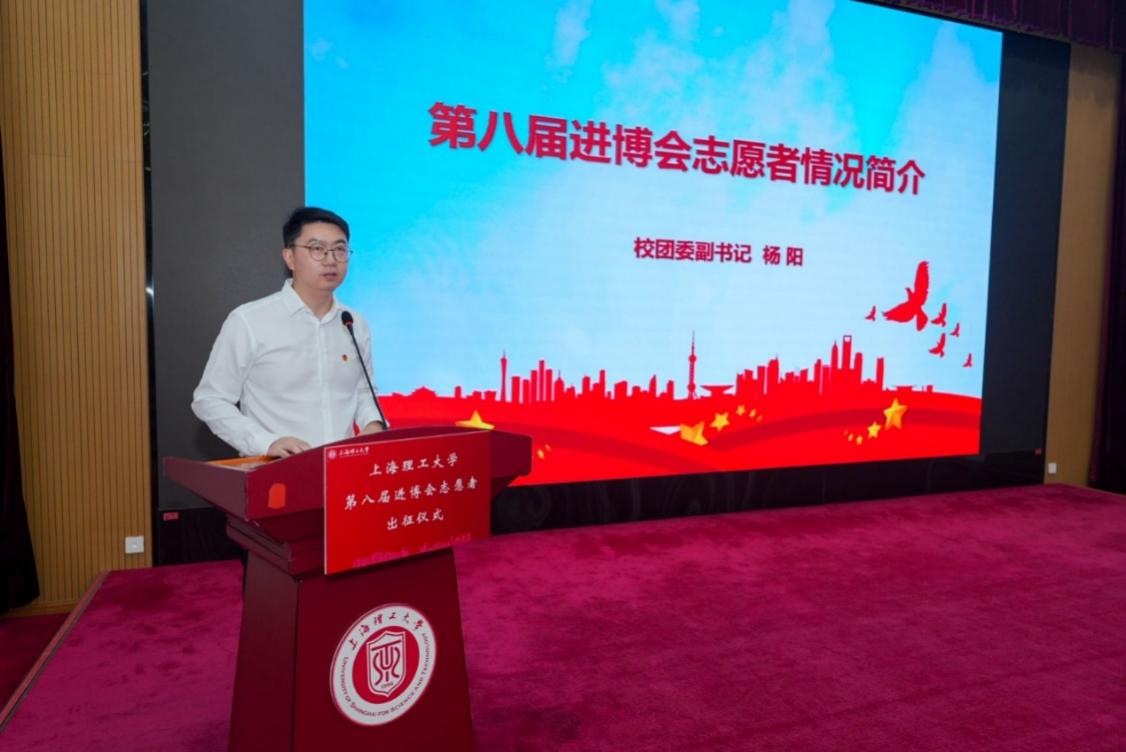 10月17日下午,上海理工大學(xué)第八屆進(jìn)博會(huì)志愿者出征儀式暨崗前培訓(xùn)在國(guó)合樓五樓報(bào)告廳舉行。校黨委副書記、副校長(zhǎng)劉德強(qiáng)出席儀式,組織部、宣傳部、教務(wù)處、學(xué)工部(處)、研工部、保衛(wèi)部(處)、后勤管理處部門負(fù)責(zé)人,校團(tuán)委全體人員,二級(jí)學(xué)院團(tuán)工作負(fù)責(zé)人以及第八屆進(jìn)博會(huì)全體志愿者參加儀式。校團(tuán)委副書記李文翔主持本次儀式。