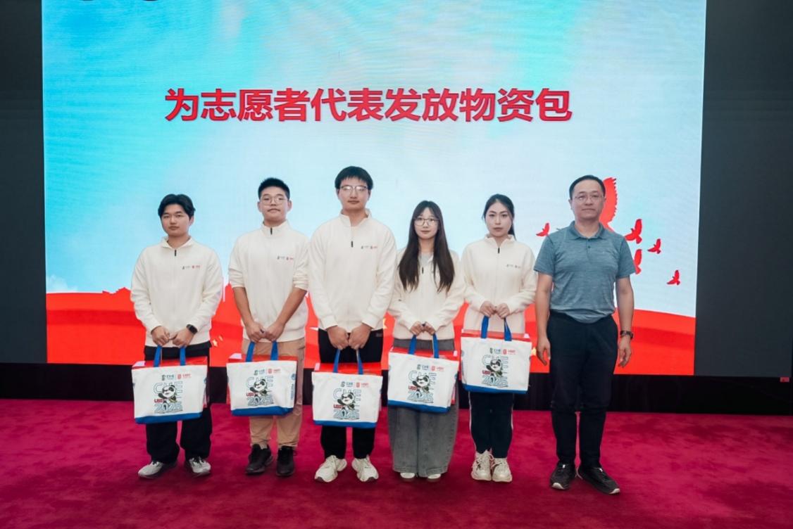 校團(tuán)委副書記楊陽就第八屆進(jìn)博會(huì)志愿者前期招募、人員構(gòu)成、培訓(xùn)計(jì)劃進(jìn)行籌備情況介紹。后勤管理處處長(zhǎng)劉威代表保障部門致辭并表態(tài),將為志愿者提供最有力、最溫暖、最周全的后勤服務(wù)。保衛(wèi)部(處)長(zhǎng)謝錫浩為志愿者代表發(fā)放物資包。正是因?yàn)橛袑W(xué)校各職能部門在背后默默守護(hù),志愿者們才能心無旁騖,全力以赴投入進(jìn)博服務(wù)的最前線。