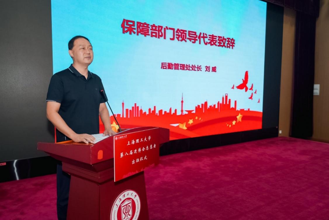 劉德強(qiáng)為即將出征的志愿者授旗并做動(dòng)員講話。他代表學(xué)校黨委對(duì)本屆77位“小葉子”和老師們表示衷心的感謝和誠(chéng)摯的問候。他指出,參與進(jìn)博會(huì)志愿服務(wù),是黨和國(guó)家交給我們的一項(xiàng)重要政治任務(wù),也是一堂生動(dòng)的“大思政課”,更是同學(xué)們?cè)鲩L(zhǎng)見識(shí)、錘煉品格、提升能力的寶貴實(shí)踐平臺(tái)。他對(duì)上理“小葉子”們提出了三點(diǎn)希望:一是胸懷“國(guó)之大者”,在服務(wù)大局中彰顯青春本色,要以最飽滿的精神狀態(tài)、最專業(yè)的服務(wù)水準(zhǔn),讓世界透過進(jìn)博會(huì)的窗口,看到一個(gè)更加真實(shí)、立體、全面的中國(guó),看到一個(gè)自信、專業(yè)、友善的上理青年形象;二是錘煉過硬本領(lǐng),在崗位奉獻(xiàn)中淬煉青春鋒芒,要以“精益求精”的態(tài)度貫穿培訓(xùn)直至服務(wù)保障的全過程中,于細(xì)微處見真章,在平凡崗位創(chuàng)不凡;三是凝聚團(tuán)隊(duì)力量,在團(tuán)結(jié)協(xié)作中激揚(yáng)青春能量,要以“奉獻(xiàn)、友愛、互助、進(jìn)步”的志愿精神,互相關(guān)心、互相幫助、互相學(xué)習(xí),心往一處想、勁往一處使,共同譜寫屬于第八屆上理“小葉子”的精彩華章。