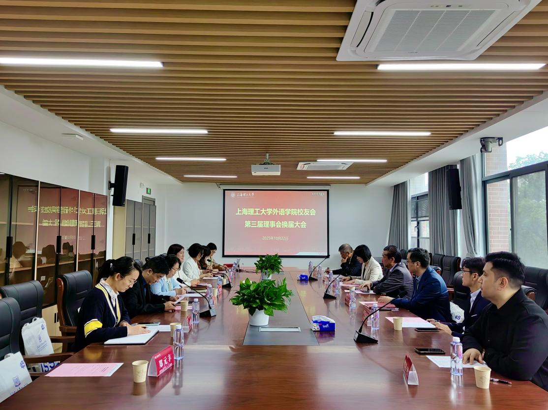 10月22日上午,上海理工大學(xué)外語學(xué)院校友會第三屆理事會換屆大會在外語學(xué)院306會議室隆重舉行。外語學(xué)院黨政領(lǐng)導(dǎo)、校友理事會成員及校友代表參加,會議由外語學(xué)院黨委副書記沈蓮蓮主持。